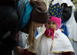 Pozdravit tříkrálové koledníky přišli ředitelka Diecézní charity ČB Michaela Čermáková a ředitel Městské charity ČB Josef Hes. Premiéru v přivítání koledníků na náměstí měl nový českobudějovický primátor Jiří Svoboda! Pavel Posád, světící biskup českobudějovický, pozdravil všechny malé i velké a udělil požehnání.