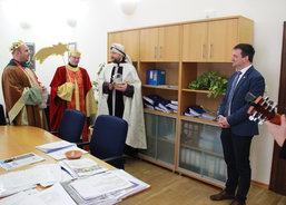 Kašpar, Melichar a Baltazar z Diecézní charity a městské charity Č. Budějovice vyrazili s novoročním požehnáním po jihočeské metropoli. Navštívili magistrát Českých Budějovic a primátora Jiřího Svobodu, zavítali do českobudějovické nemocnice, na Krajském úřadě Jihočeského kraje pozdravili paní hejtmanku Ivana Stráskou i pracovníky odborů a svou výpravu završili v Budějovickém Budvaru, n.p. Na všech místech se setkali s milým přijetím. Děkujeme!
