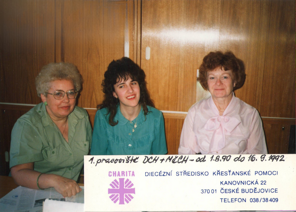 V březnu 1990 se stal českobudějovickým biskupem Miloslav Vlk a byl to právě on, který mne vyzval, abych se věnovala vzniku charitního díla v diecézi. Žili jsme tehdy téměř všichni v jakési polistopadové euforii a začínali jsme bez zkušeností se skupinou dobrovolníků, ale plni dobré vůle angažovat se v charitativní práci. Velmi nám tehdy pomohly hospitace v Rakousku, Německu či ve Francii, kde jsme viděli fungující sociální projekty na pomoc zdravotně postiženým, seniorům, ženám v tísni či lidem na okraji společnosti. Bylo nutné se orintovat v nejdůležitějších oblastech pomoci potřebným. Brzy bylo jasné, že nosnou se ukázala řinnost vznikajících ošetřovatelských a pečovatelských středisek. BUdoucí pracovníky pro ně připravovaly kurzy bl. Zdislavy, kde dobrovolně vyučovali lékaři, zdravotní sestry, psychologové, sociologové a kněz. V téže době vznikaly také farní charity, tehdy především na bázi dobrovolné činnosti. Bylo třeba objíždět farnosti - tehdy autobusem či vlakem - než jsme dostali darem starší vůz. Současně se také teprve vytvářel legislativní rámec charitativní činnosti. Dne 1. prosince 1991 byla biskupem Antonínem Liškou založena Diecézní charita českobudějovická, kde jsem se stala ředitelkou a vedla ji až do svého odchodu do důchodu v březnu 1993.