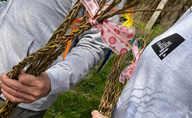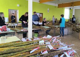 Všude kolem domu Martina Hubeného v Žimuticích na Českobudějovicku jsou nastříhané vrbové proutky. Každý den tam společně s dobrovolníky plete pomlázky pro charitu. Loni jich vyrobili a prodali 1500 a za výtěžek 140 tisíc korun nakoupila charita třeba školní pomůcky nebo dětské brýle.