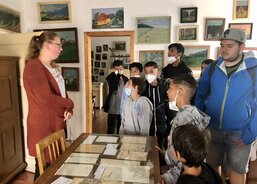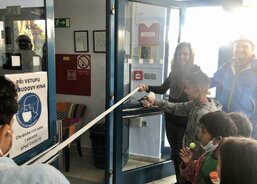„V Kulturním a informačním centru města Velešín jsme přestřihli pomyslnou startovací pásku naší výstavy. Bohužel v ten moment nešla elektřina, nicméně jsme si stihli udělat společnou aktuální fotku. Poté jsme zavítali do místního domu, kde byla výstava obrazů naivních malířů Šítalových. Paní průvodkyně nás také vzala do místní lazebny," doplňuje komunitní pracovnice Zuzana Fraňková.